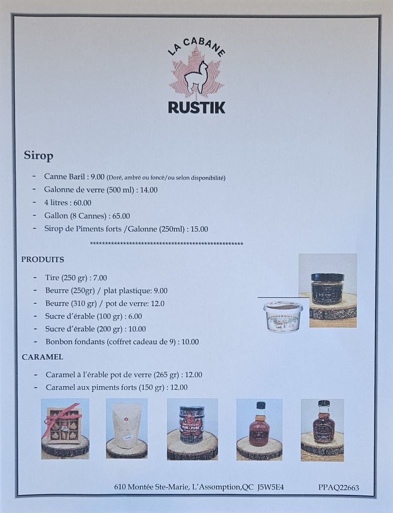 - Sucre d’érable (100 gr) : 6.00